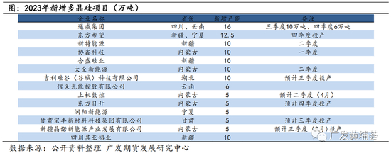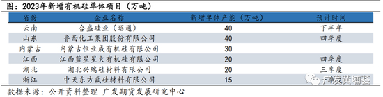2023年:工业硅新增产能主要集中于明年下半年投放