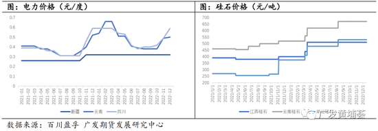 电力成本方面,由于近年国家实行电力市场化,西南地区电价皆有所上调。截至今年12月份,西南地区枯水期电价0.52元度左右,同比上涨0.2元/度,丰水期电价0.38-0.4元/度,同比上涨0.06元/度。