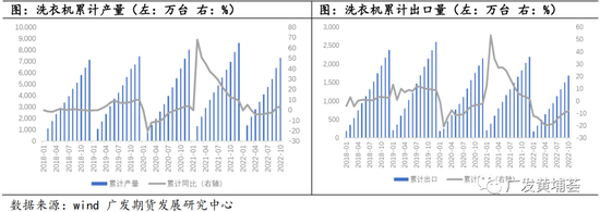 在电子电器领域,有机硅由于其出色的耐温特性和电气绝缘性能,可用于电子器件的导热胶、胶粘剂和灌封胶。2022年受地产走弱和外需回落的影响,耐用消费品订单表现一般。截至2022年10月,冰箱累计生产7159万台,同比减少3.3%。家用洗衣机生产7318万台,同比增长3.77%。出口方面受外需走弱回落明显,截至2022年10月,冰箱累计出口47790万台,同比减少20.2%。家用洗衣机出口1690万台,同比减少8%。预计2023年出口方面由于海外经济仍处于下行阶段,出口方面压力依旧较大。内需方面在地产复苏,防疫政策优化后,尤其是地产后周期属性较强的白电,需求有望缓步回升,同时随着新兴小家电的推出,如清洁机器人、洗地机等的市场不断提高,预计明年有机硅在电子电器领域的消费有望小幅增长。