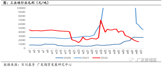 由于今年利润水平较高,厂家生产意愿较强,全年供应充足,而下游消费受疫情影响偏疲软,导致库存大幅累库。根据百川盈孚统计,截至今年12月16日,工业硅行业库存21.01万吨,较去年同比增长24.59%。从季节性来看,上半年工业硅保持去库趋势,但由于今年4月份,上海地区爆发疫情,导致下游有机硅消费需求走弱,库存去库下滑不及预期,截止6月底,行业库存14.77万吨,同比增长92.84%。下半年西南地区进入丰水期后,西南地区供应增加叠加新增产能投放,工业硅库存保持累库趋势,8月份后供应频有扰动,累库趋势放缓。