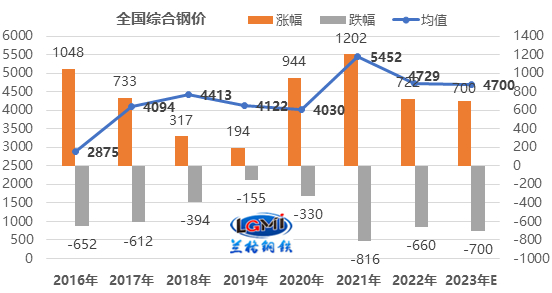 2.5 2023年国内市场展望:钢材均价基本与上年持平