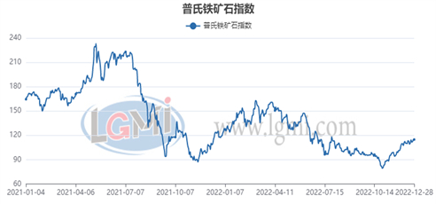 2023年中国钢铁产量释放仍将小幅下滑,同时,废钢回收体系的恢复也将使得废钢应用比例扩大,从而带动铁矿石需求继续回落。而从铁矿石供应来看,四大矿山2023年的财年产量目标显示,2023年全球铁矿石供应均有一定的增量。兰格钢铁网跟踪数据显示,必和必拓、力拓2023年供应增量分别在300、600万吨左右,FMG供应增量在500万吨左右,淡水河谷供应增量在1000万吨左右。综合来看,预计2023年全年四大矿山铁矿石供应增量在2500万吨左右,同比增加2%左右。此外,印度铁矿石出口关税的下调,也将增加全球及中国铁矿石资源供应;而中国国内加快“基石计划”的推进,国产铁精粉产量的提升也将增加铁矿石整体供应量。因而2023年铁矿石市场供需将趋向宽松,铁矿石价格水平将有一定下移。兰格钢铁研究中心预测2023年普氏铁矿石价格指数均值在110美元左右,同比下跌8%左右;波动区间在70-160美元之间(详见图14)。