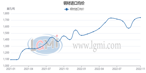 第二阶段:(4月7日-11月1日)震荡下行。二季度以来,强预期落于弱现实,需求明显不足,全球加息潮下,大宗商品承压,原料成本回落,供给端承压等综合影响国内钢铁市场价格震荡向下;截至2022年11月1日,价格跌至年底最低点,兰格钢铁综合钢材价格指数为4069元,较4月6日高点下跌1382元,跌幅为25.4%;