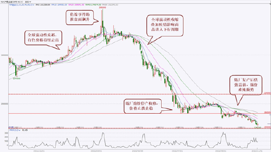 2022年锡价先扬后抑,一季度在全球宽松货币政策的加持下,充裕的流动性使得有色金属继续2021年的涨势。但是自从美联储为了应对高通胀开始持续加息之后,全球流动性收紧,导致全球经济衰退预期加强,加之国内疫情形势的变化,2022年下半年大宗商品市场也进入了阶段性熊市。锡价也在“伦镍”事件后大幅跳水并开启了下行周期。从锡基本面情况来看,供给回升而需求下滑是市场主旋律。