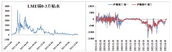图5-2 LME锡升贴水 图5-3 沪锡合约月间价差