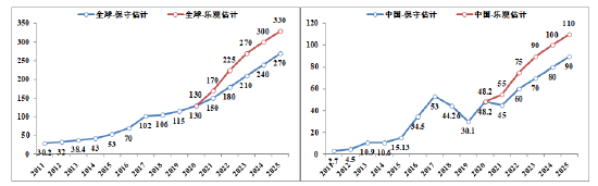 图4-10 全球光伏装机量预测 图4-11中国光伏装机量预测