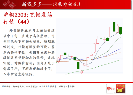 基本面概述:基本面整体中性,美国释放出加息放缓甚至暂停加息的信号,宏观回暖,对铜价有利;国内正处于需求淡季,下游表现相对平淡,入市拿货意愿较弱。