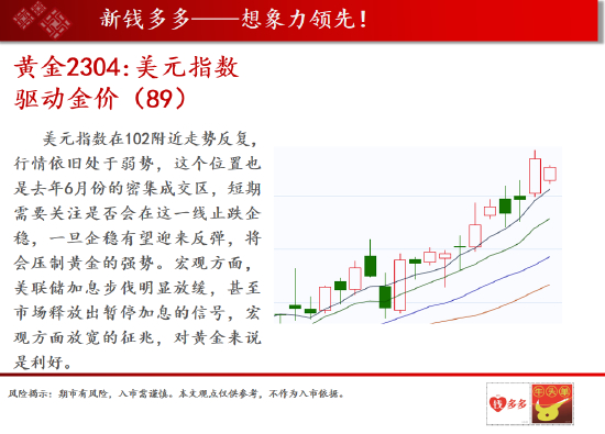 基本面概述:宏观方面,美联储加息步伐明显放缓,甚至市场释放出暂停加息的信号,宏观方面放宽的征兆,对黄金来说是利好。