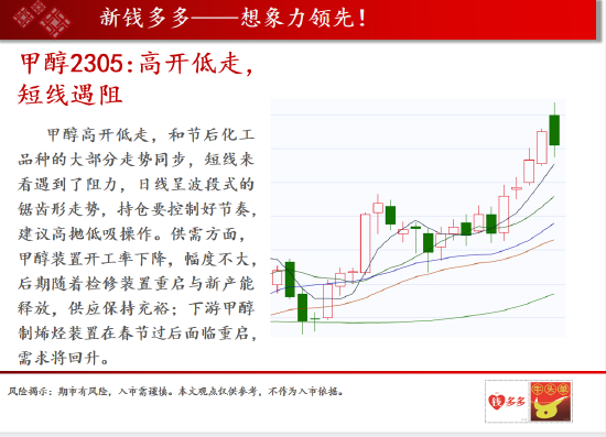 操作建议:甲醇高开低走,和节后化工品种的大部分走势同步,短线来看遇到了阻力,日线呈波段式的锯齿形走势,持仓要控制好节奏,建议高抛低吸操作。