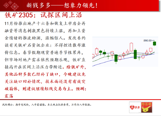 操作建议:除铁矿外,其他品种多数已经补了缺口,今晚建议先关注缺口回补情况,技术面还没有有效突破箱体,则建议继续短线交易为主。预测:震荡。