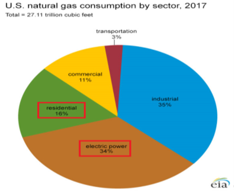 图4:住宅和发电需求占全美天然气消费量一半