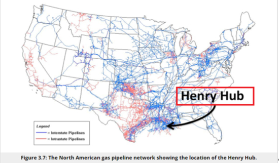 图2:美国的天然气管线网络与亨利港(Henry Hub)的位置