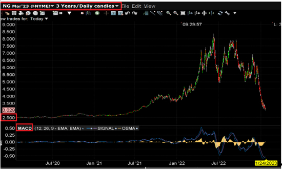 图7:天然气价格跌至近三年的最低位