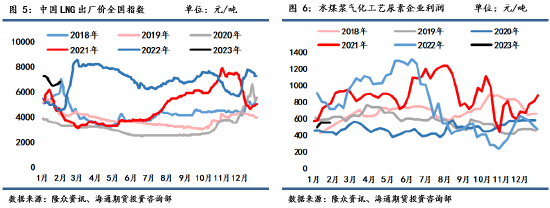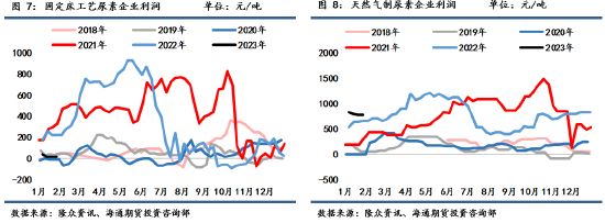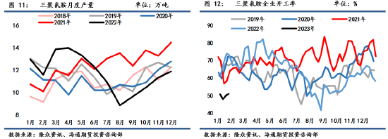 在国家对煤炭大力保供稳价的背景下,煤炭价格基本回归平稳,波动大幅减弱,1月份动力煤价格保持在1200元/吨左右,节前上涨至1220元/吨,节后又回落至1195元/吨。煤炭价格平稳,尿素价格虽有上行,但幅度也不大,因此企业利润变化不大,固定床工艺成本达到2600元以上,利润维持在100元/吨左右;水煤浆气化成本也在2150元/吨以上,利润维持在500元/吨左右。后期随着天气的转暖,煤炭价格有继续下跌的空间,而春耕旺季时节尿素价格易涨难跌,因此尿素企业利润有持续扩张的可能。