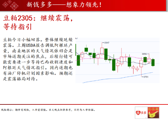 基本面概述:豆粕今日小幅回落。整体继续延续震荡。上周USDA报告调低阿根廷产量,南美地区的天气情况依旧会是市场近期关注的焦点,后续行情可能需要进一步等待巴西收割进度和阿根廷天气情况指引。