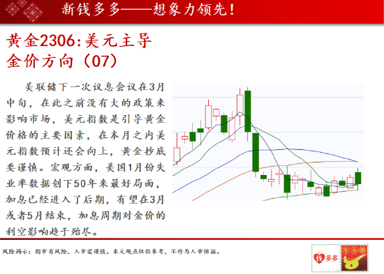 基本面概述:宏观方面,美国1月份失业率数据创下50年来最好局面,加息已经进入了后期,有望在3月或者5月结束,加息周期对金价的利空影响趋于殆尽。