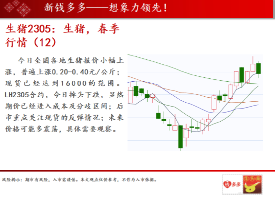 操作建议:LH2305合约,今日掉头下跌,显然期价已经进入成本及分歧区间;后市重点关注现货的反弹情况;未来价格可能多震荡,具体需要观察。