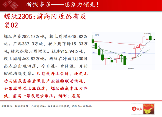 基本面概述:螺纹产量282.17万吨,较上周增加18.82万吨。厂库337.3万吨,较上周下降15.33万吨,结束连续六周增长。社库915.94万吨,较上周增加3.82万吨。螺纹在冲破1月30日高点后出现回落,今日进一步降温,开始回踩均线支撑。