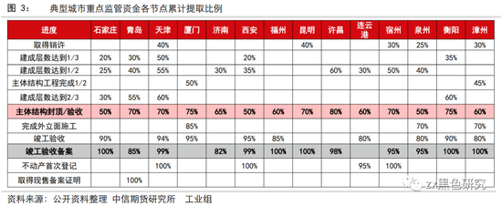 从预售资金监管的提取比例来看,房企完成玻璃所处的外立面安装阶段相较于主体封顶阶段而言并不能提取更多的资金,需要进一步完成到竣工才能提取剩余的资金,因此在高周转策略的驱动下,我们认为大部分待竣工面积中是并没有进行玻璃的安装的。