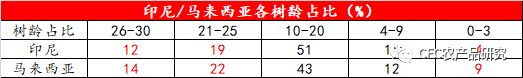 预计马来西亚和印尼2023年棕榈油供应将增加超300万吨,23年下半年至24年下半年产量将呈增加趋势。预计未来5年马来西亚和印尼棕榈种植面积和产量将延续增长趋势,预估2027年印尼棕榈油产量将超6000万吨,预估马来西亚2030年棕榈油产量仍不到2000万吨。2022年马来西亚棕榈树龄26-30年和21-25年占比分别为14%和22%,高于印尼的12%和19%,20年以上树龄马来西亚合计36%,印尼合计31%。马来和印尼0-3年棕榈树龄占比分别为9%和4%。整体来看,印尼棕榈树龄相对马来西亚更为合理,这也导致未来几年印尼棕榈增产潜力超过马来。