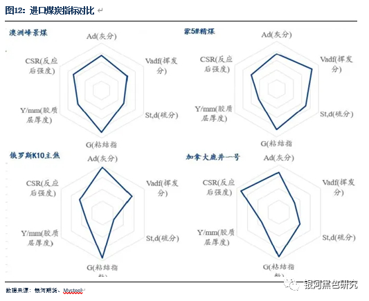 澳洲方面,澳煤低硫、低灰、高粘结、高热强,所生产的焦炭可提升高炉生产率,特别大型高炉生产对高强度焦煤是刚性需求。澳大利亚硬焦煤和半硬焦煤生产的焦炭CSR(热强度)较高,因此受到焦企和钢厂的青睐。