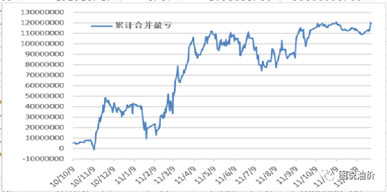 正在困境之时,8月初燃料油内外价差出现一个好机会,紧赶慢赶,终于在180燃油上面建好了仓位,随着燃油内外价差的回落,我们也一举走出了低谷,其后虽也有回撤,但依然在10月底把利润做到了近800万。大家都松了一口气,接近20%的回报也大抵能够说得过去了。