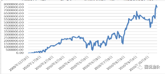 总投资扩大到了1个亿,我们把交易量扩大到了2万吨,利润很快在年底突破了4000万。但是没有那么轻松,11年初内盘棉花继续向年度高位进攻,这段时间外盘的涨幅明显落后内盘,使得我们的利润回落到最低的900万,不过最终我们挺过了2月份的难关,并在4月底利润突破了亿元大关。