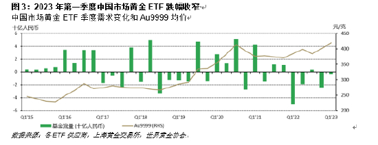 我们在之前的分析中提到,中国市场黄金ETF投资者倾向于“高卖”(有时投资者仅仅因为金价缺少波动就决定卖出持有的黄金ETF)和“低买”。因此,中国市场黄金ETF的需求变化与当地金价走势呈负相关,这种关系在2020年之后更加明显。