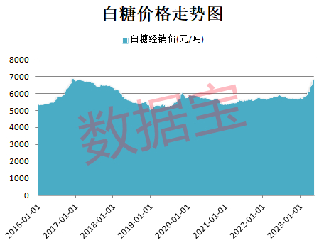 今年以来,国内外糖价持续走高,当前国内期现货糖价均处在多年来的历史最高水平。据生意社,截至5月19日,白糖市场价格为6900元/吨,较去年底涨幅达到19.25%。与历史对比来看,白糖价格已经创下2018年以来的新高。