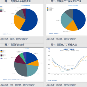 美国的油品市场中,汽油消费占比达到50%以上,其次是柴油和取暖油等中间馏分,航煤是第三大石油消费品,之后是轻烃类和燃料油。