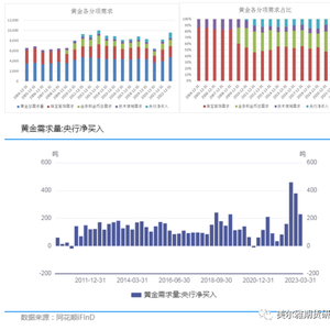 是什么因素主导全球央行纷纷抢购黄金呢?我们知道黄金作为一种特殊商品,既有商品属性又有金融属性,从上述的商品需求角度看,过去十年几乎无显著变化,金融属性反映在金币或金条需求、投资需求和央行购买需求,而金融需求中金币、投资需求整体波动不大,波动的主导在于央行的净需求。