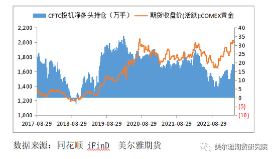 这也解释了本轮黄金价格涨至历史新高后在美联储强劲加息背景下为何迟迟不下跌,从长期来看,必需依靠美国政府债务余额增速缩减至4%以下区间才有希望驱动黄金价格趋势性调整。而当前处于债务上限谈判的关键时期,至少目前来看,美国国会也倾向于支持债务上限打破,但是前提条件是约束美国政府支出,这势必会令美国经济呈现衰退压力,而美联储的态度却表现为无法容忍衰退或金融风险爆发,因此,我们认为黄金价格长期上涨的宏观驱动仍然存在。