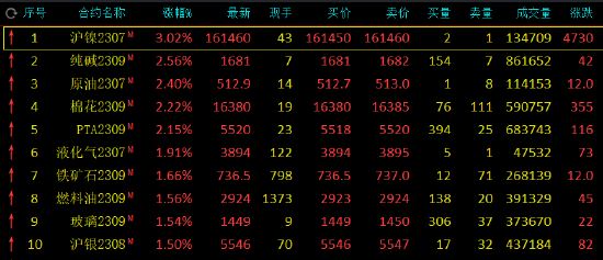 期市开盘:沪镍涨超3%,白糖跌超2% 市场资讯 2023.06.02 09:00 期货K线图 6月2日早盘开盘,国内期货主力合约涨多跌少。沪镍涨超3%,纯碱、SC原油、棉花、PTA涨超2%。跌幅方面,白糖跌超2%,苯乙烯(EB)跌超1%。