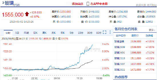 2023年6月2日,玻璃期货主力合约触及涨停。