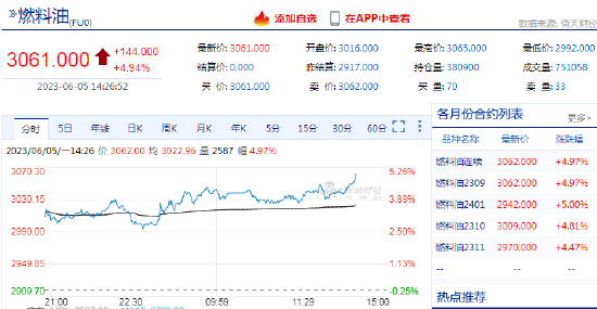 2023年6月5日,燃料油期货主力合约日内涨超5%。
