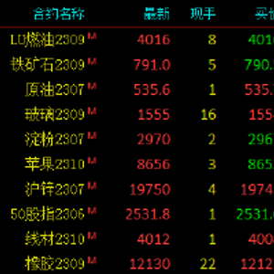 2023年6月8日,国内期货主力合约涨跌不一,低硫燃料油(LU)、铁矿石、SC原油涨超2%,玻璃、淀粉涨超1%。跌幅方面,苯乙烯(EB)跌超2%,沪锡、短纤、纯碱跌超1%。