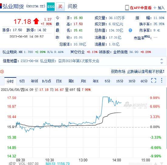 大金融持续拉升 弘业期货涨停