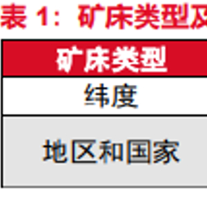 Ø 铝土矿概况。铝土矿的质量评价主要参考铝硅比(A/S);红土型铝土矿主要分布在低纬度国家,喀斯特型铝土矿主要分布在中高纬度国家,且分布较为集中,储量排名前五的国家合计占到全球的71.8%。中国的铝土矿主要集中在广西、贵州、河南、山西四个省份,储量合计占到全国的93.2%。通过对比储量、产量可以发现,中国的铝土矿开采力度较大、贫化现象明显。