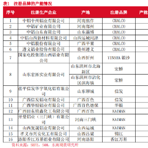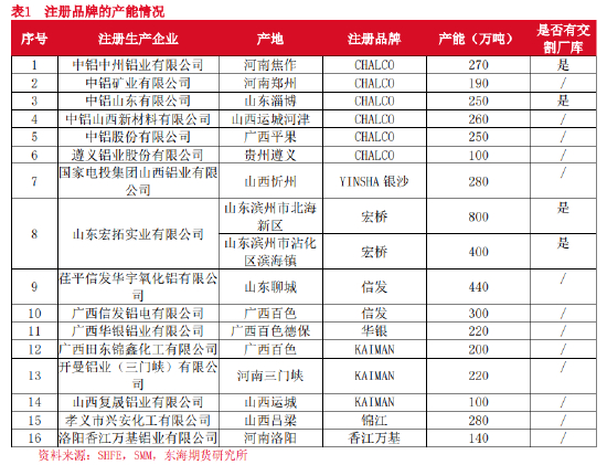 氧化铝可供交割的商品分为两大类:第一类,在上期所注册的品牌,均为国产氧化铝品牌;第二类,交易所认可的企业品牌,均为进口氧化铝的品牌。