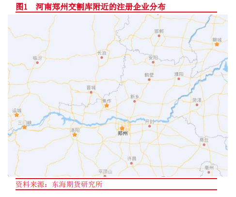 河南郑州仅有中铝矿业一家注册生产氧化铝企业,年产能190万吨;但郑州地处中原、地理位置优越,既可以覆盖河南省内焦作、三门峡、洛阳的注册生产企业,也可以覆盖山东聊城、山西运城等临近的注册生产企业,合计覆盖产能约1350万吨;同时便于以公路、铁路运输的方式将氧化铝运送至新疆、甘肃等主销地及交割库。