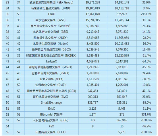 全球及中国期货交易所排名总体稳中有变