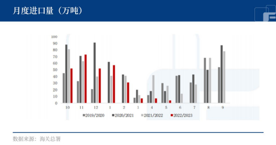 海关最新公布数据显示,中国2023年5月进口糖4万吨,同比减少22万吨,同比降幅达到-84.6%。2021/22榨季我国累计进口糖534万吨,同比下降99万吨。截至目前,新榨季我国累计进口糖 283万吨,同比下降53万吨。进口糖到港开始边际递减。