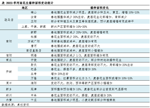 注:本文仅作为2023季河南花生播种面积的初步评估,不作为投资依据。后续根据调研样本的完善或有修正。