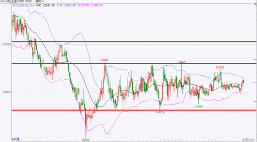从沪铅主力合约周线级别的走势图上看的,当前期价依旧处于14000-16500元/吨的震荡区间之中,目前从更长一点的周期上看,当前处于震荡三角形的末端,暂未有较好的操作机会,耐心等待震荡结束之后的趋势性行情。