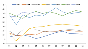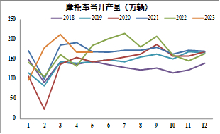 图8 摩托车当月产量
