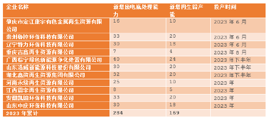 表1:再生铅新增产能