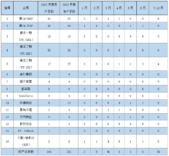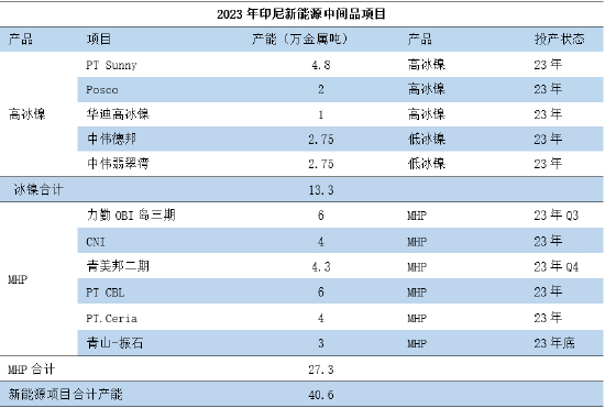 表格 4 印尼2023年新能源中间品项目(万金属吨)