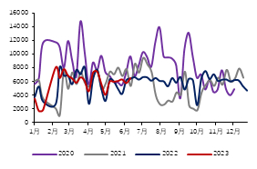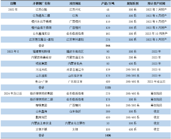 近几年不锈钢新增产能主要集中在国内和印尼,预计2023年国内新增产能达1115万吨,新增了河北毕氏、山东盛阳以及青山+广新项目,其中奈曼经安以及福建青拓项目预计6月和10月投产,截止6月份国内不锈钢年产能已达4700万吨;2024年及以后国内仍有1500万吨处于规划状态。现阶段不锈钢产能已经大幅过剩,且印尼一体化低价不锈钢产能也对国内形成冲击(2023年印尼青山计划再增100万吨),因此国内不锈钢整体行业利润偏悲观,预计后期实际投产量将低于规划水平。