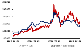 图表 62沪镍主力及硫酸镍转产电积镍成本走势(元/吨)