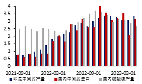 图表 5印尼中间品产量及国内进口已持续过剩(万金属吨)